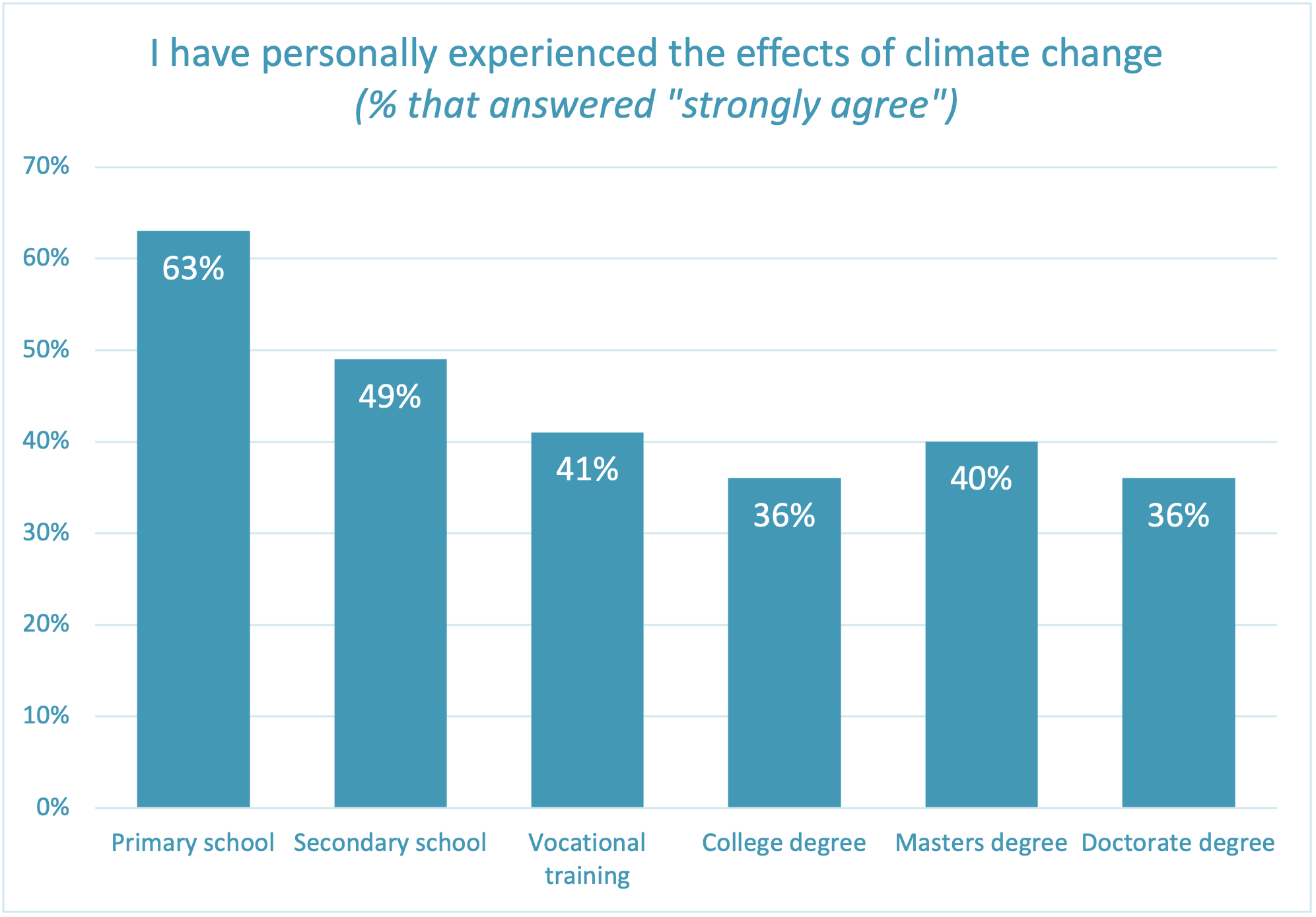 Chart showing personal experience with climate change