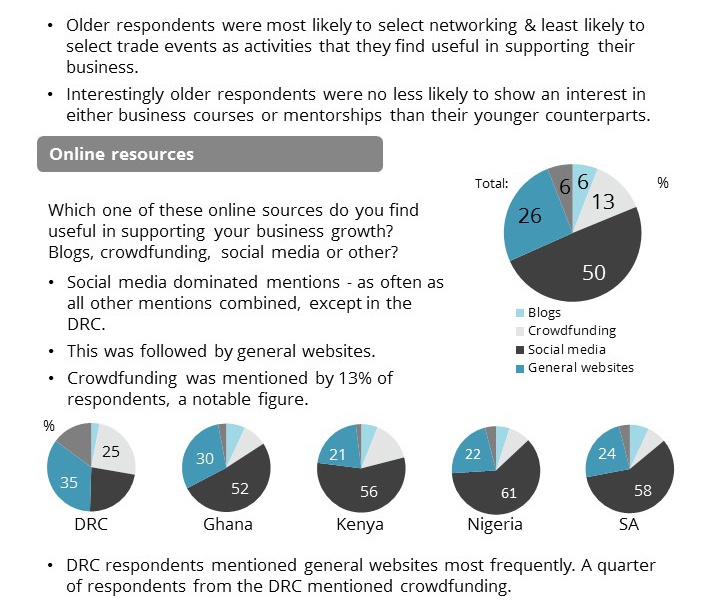 In collaboration with GES and the US State Department, mobile surveying company GeoPoll asked 1,000 entrepreneurs across Africa about entrepreneurship in their countries. GeoPoll has a database of 200 million users throughout Africa and Asia. Using this database, 200 entrepreneurs per country in the Democratic Republic of Congo, Ghana, Kenya, Nigeria, South Africa were reached. Surveys were sent via SMS the week of July 13th, 2015.